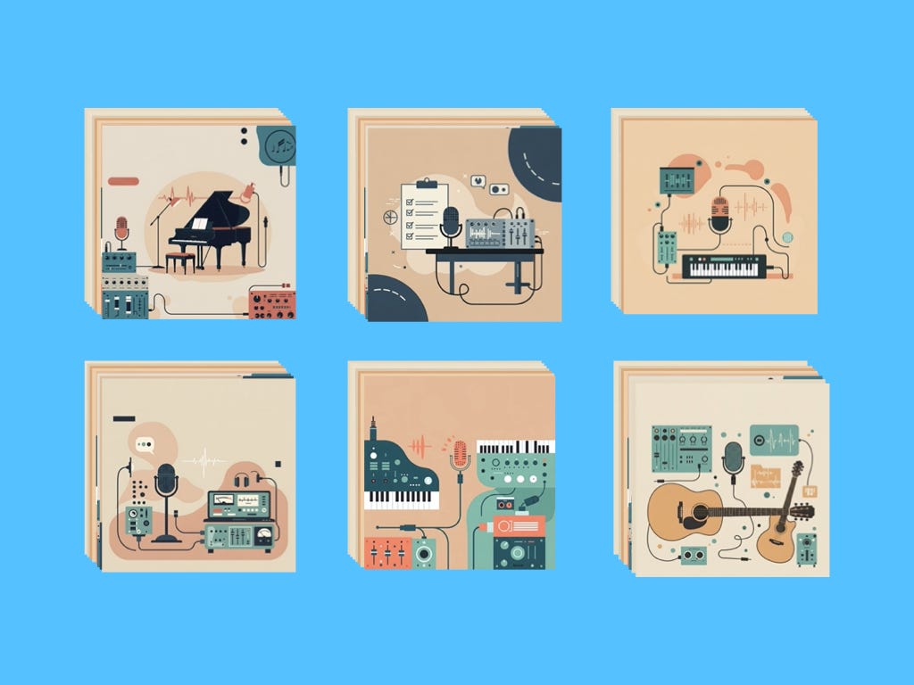 All images will be header images for a book on audio engineering (recording, mixing and mastering) that I'm hosting in notion. The header images should be 1200x630 dimensions at 150ppi. This prompt should take core idea from me, but all imagery should be minimalistic while maintaining slight curves.